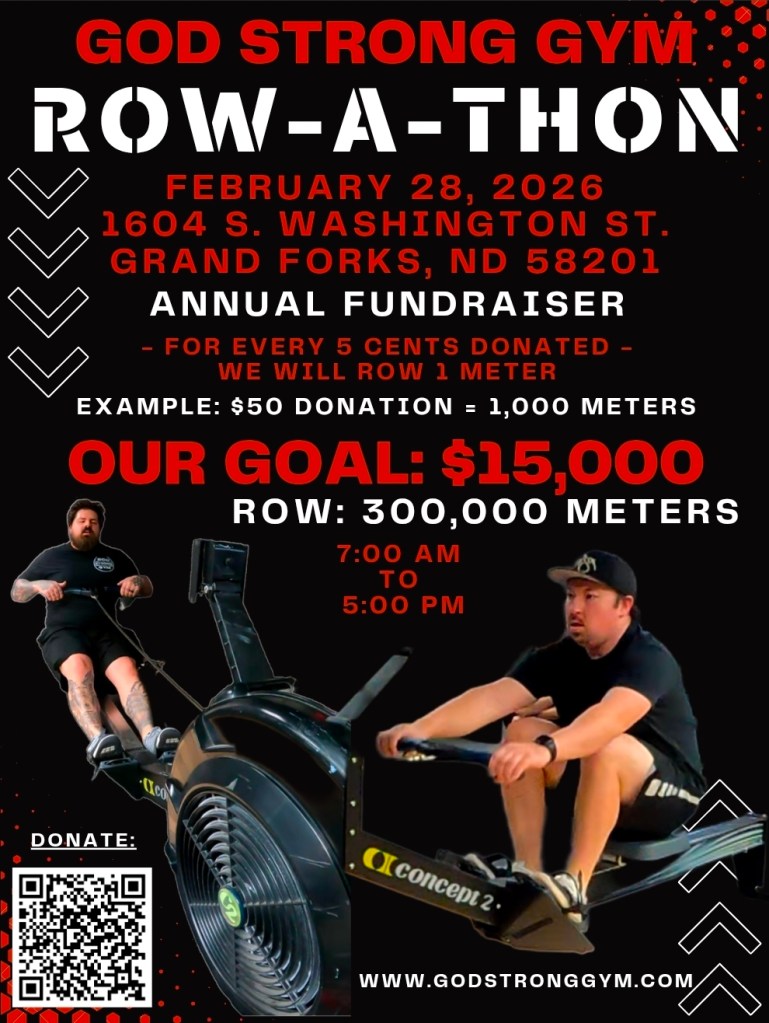 Join us for our annual fundraiser on Saturday, February 28th at 7:00 am to help us achieve our goal of raising $15,000. For every 5 cents donated we will row 1 meter. So, in order to raise $15,000 we will have to row 300,000 meters! This is not an easy task and we will need as many men and boys as possible to show up at the gym and help us row. We also need help with our funding for the gym and men’s ministry. Throughout the the year, we do a lot of free training and/or significantly discounted training for men who can not afford it. Please consider helping us by donating to the Row-A-Thon. This is the biggest fundraiser we do during the year and it is pivotal in helping us create a healthy, sustainable ministry and community.